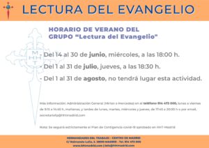 GRUPO «LECTURA DEL EVANGELIO», HORARIO DE VERANO 2021
